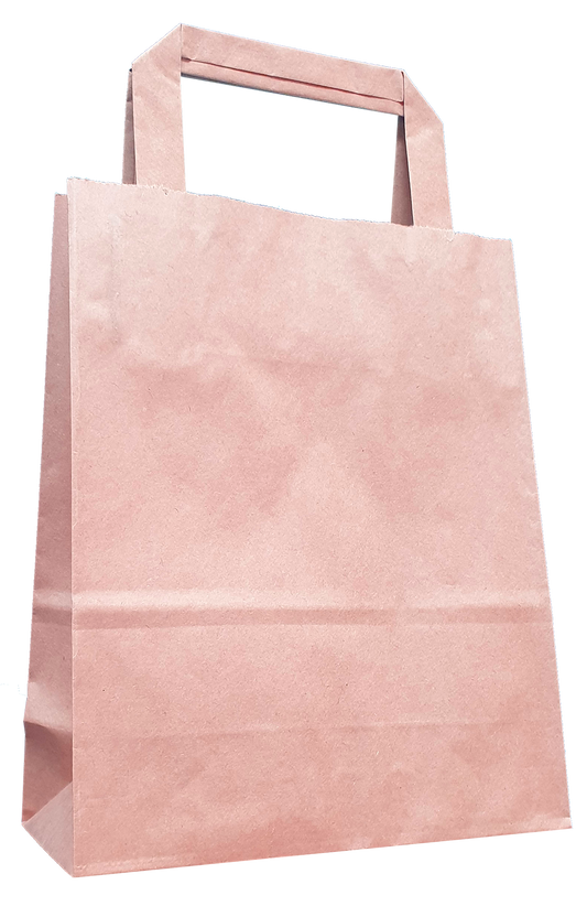 Braune Papiertragetasche mit Flachhenkeln und verstärkten Blatt-Innenflachhenkeln