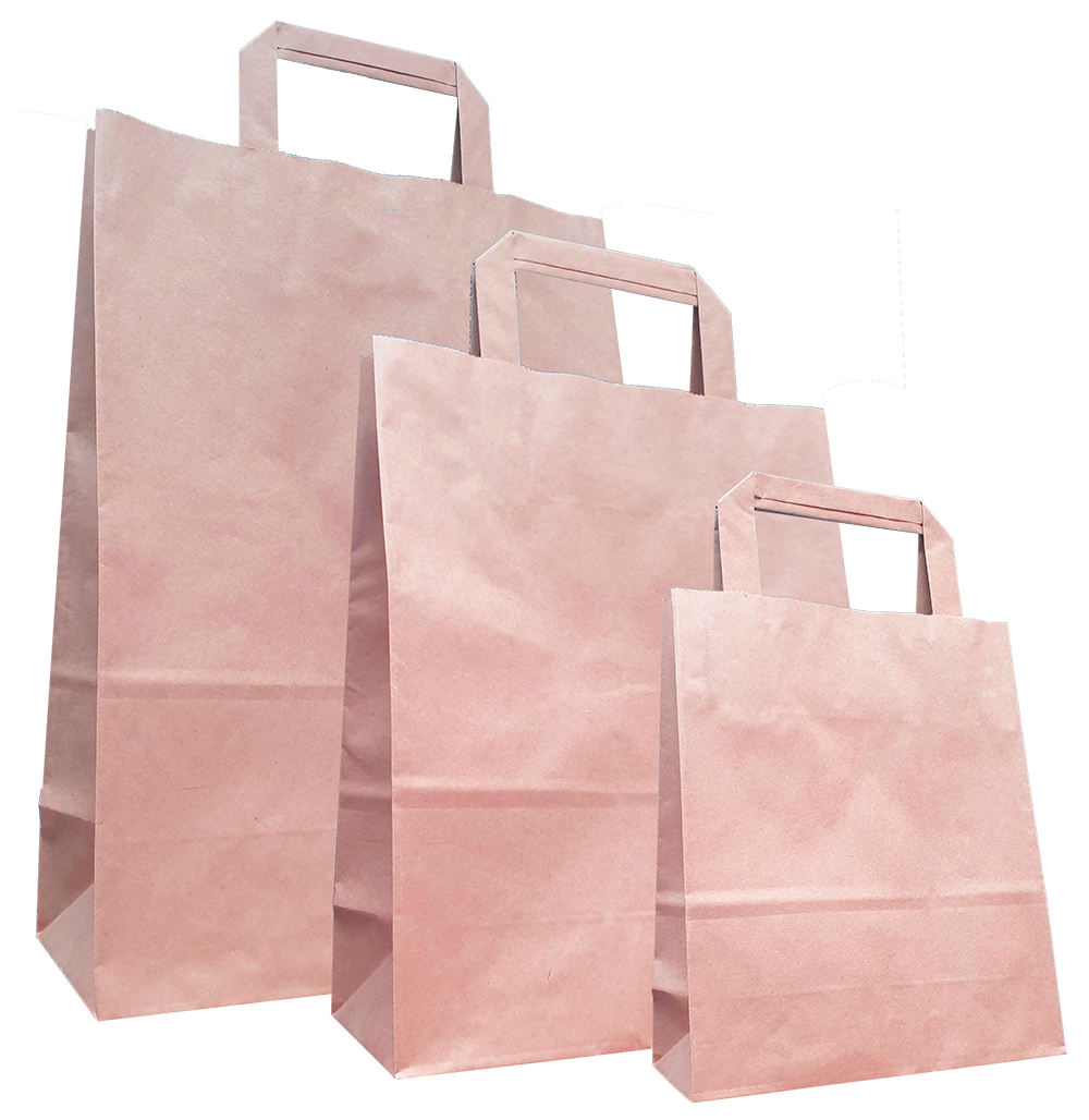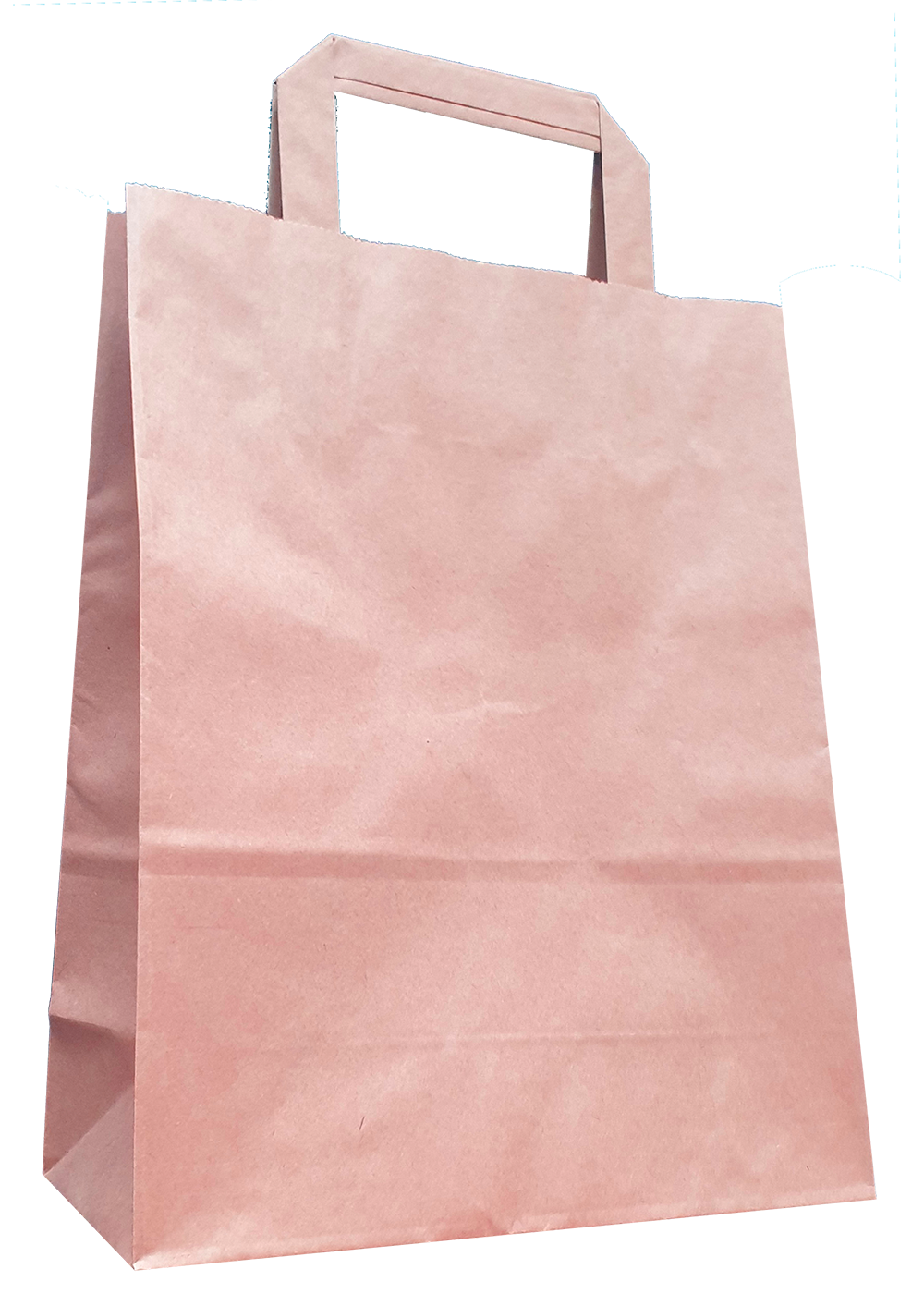 Braune Papiertragetasche mit Flachhenkeln und verstärkten Blatt-Innenflachhenkeln